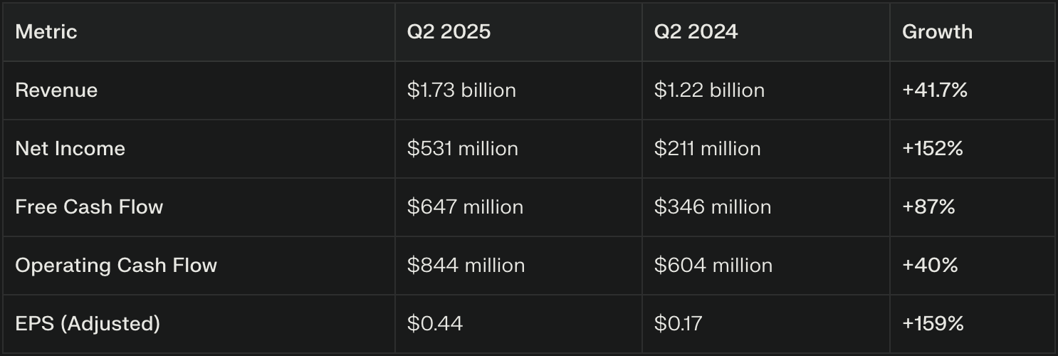 Outstanding Financial Performance: Record Q2 2025 free cash flow of $647 million