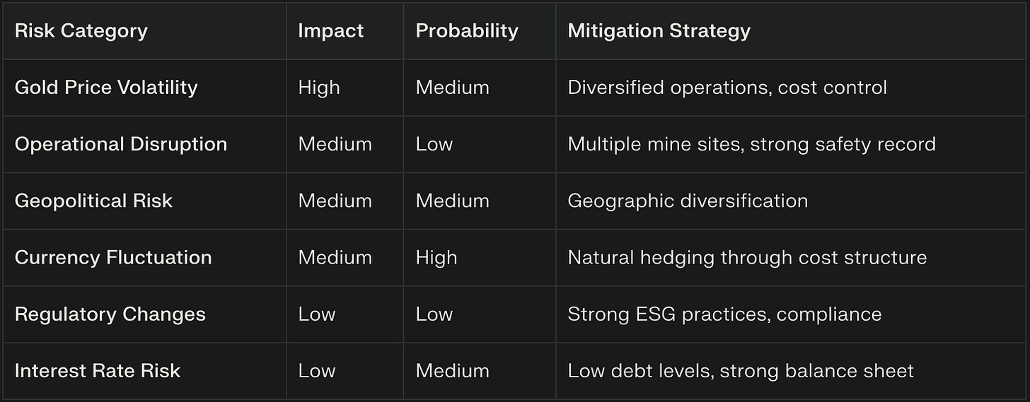 Operational & Jurisdictional Risks: Mining is a tough business. Equipment fails, and operating in different countries brings political and regulatory uncertainty.
