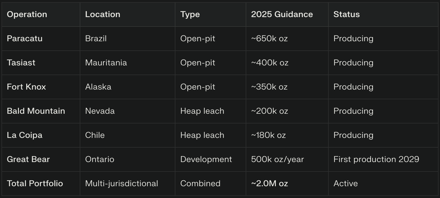 The Great Bear project in Ontario represents a significant growth catalyst, with expected annual production of 500,000+ ounces beginning in 2029 at competitive all-in sustaining costs of approximately $800 per ounce.